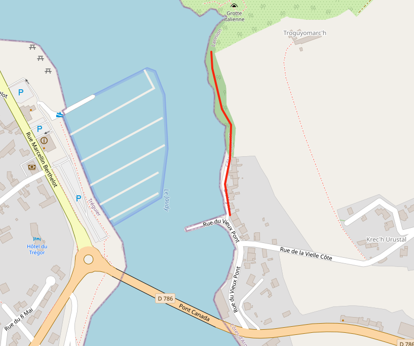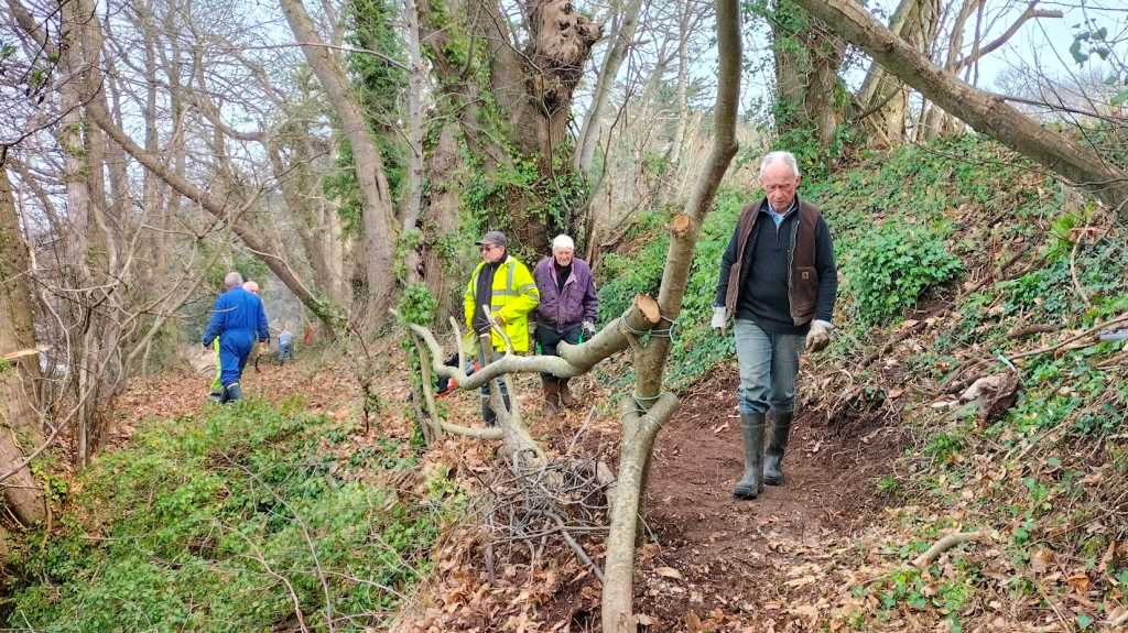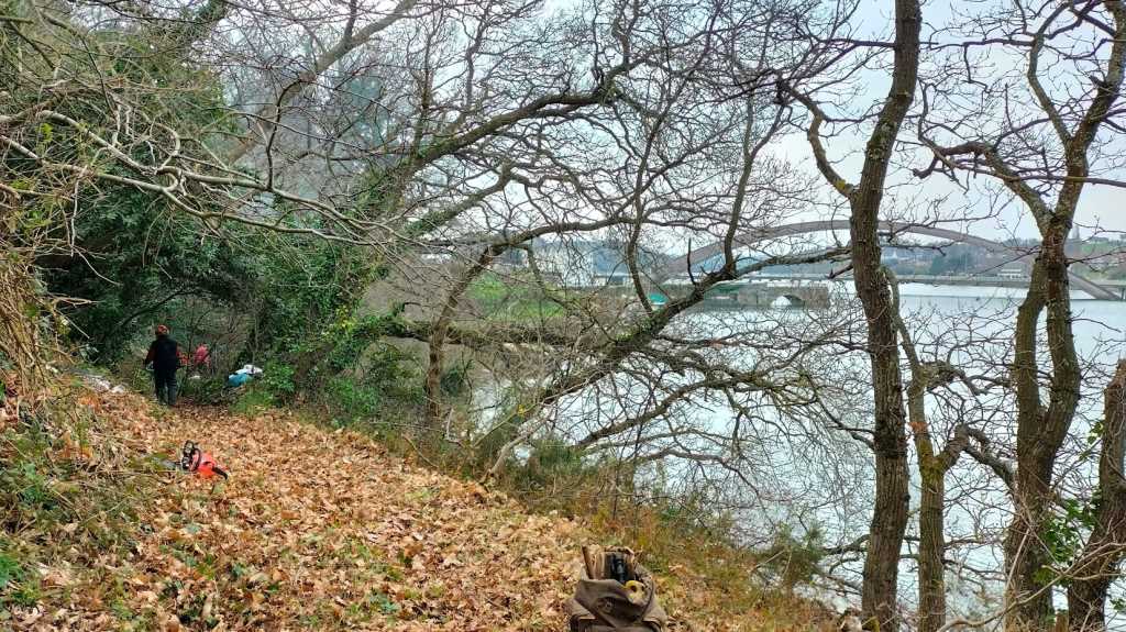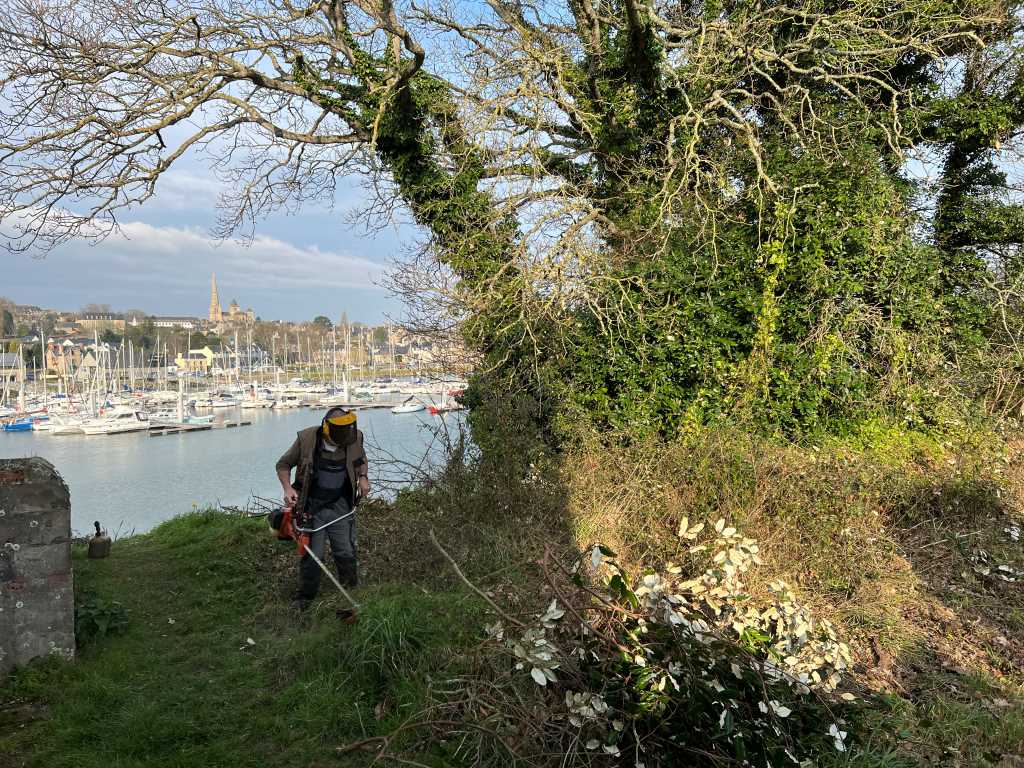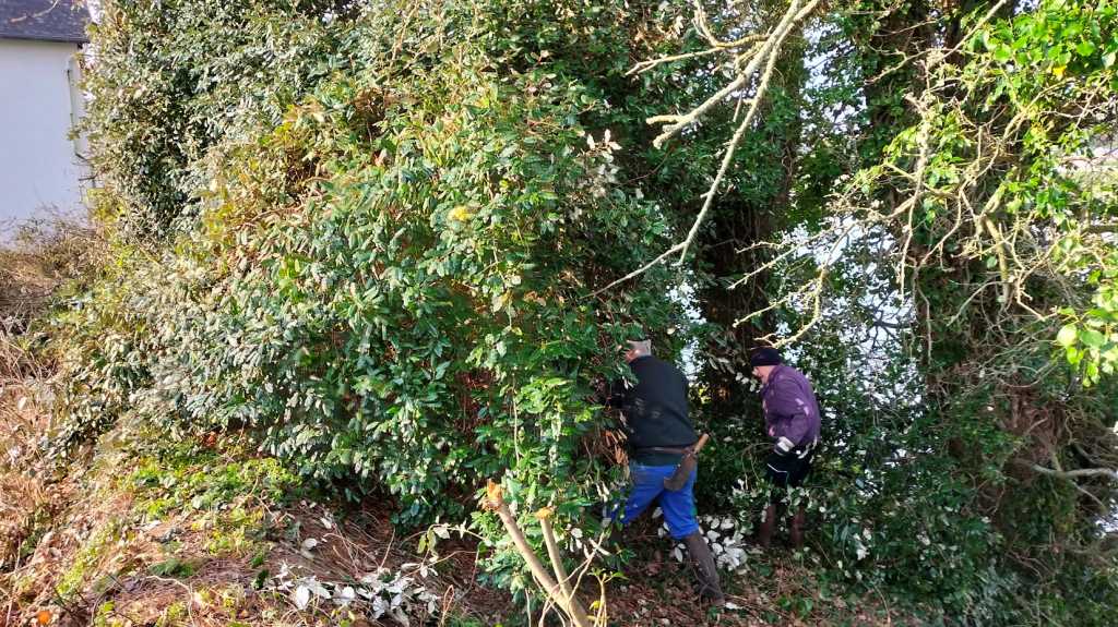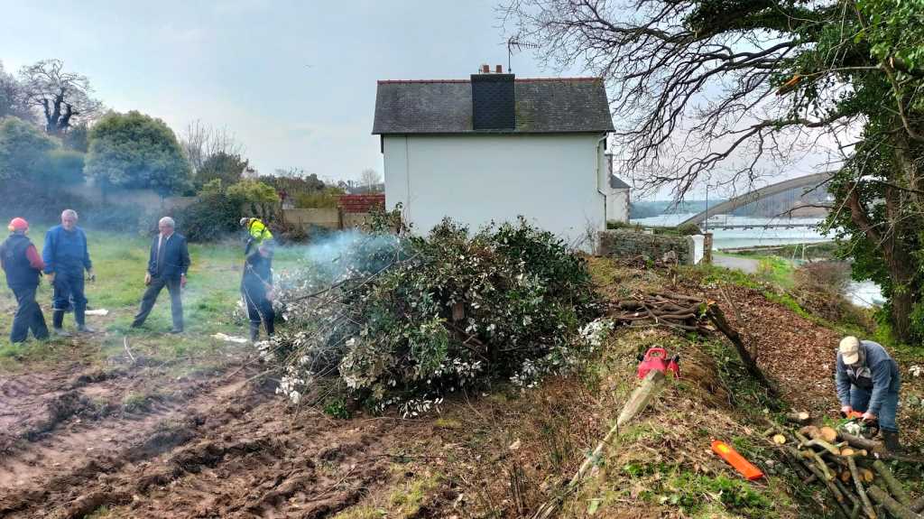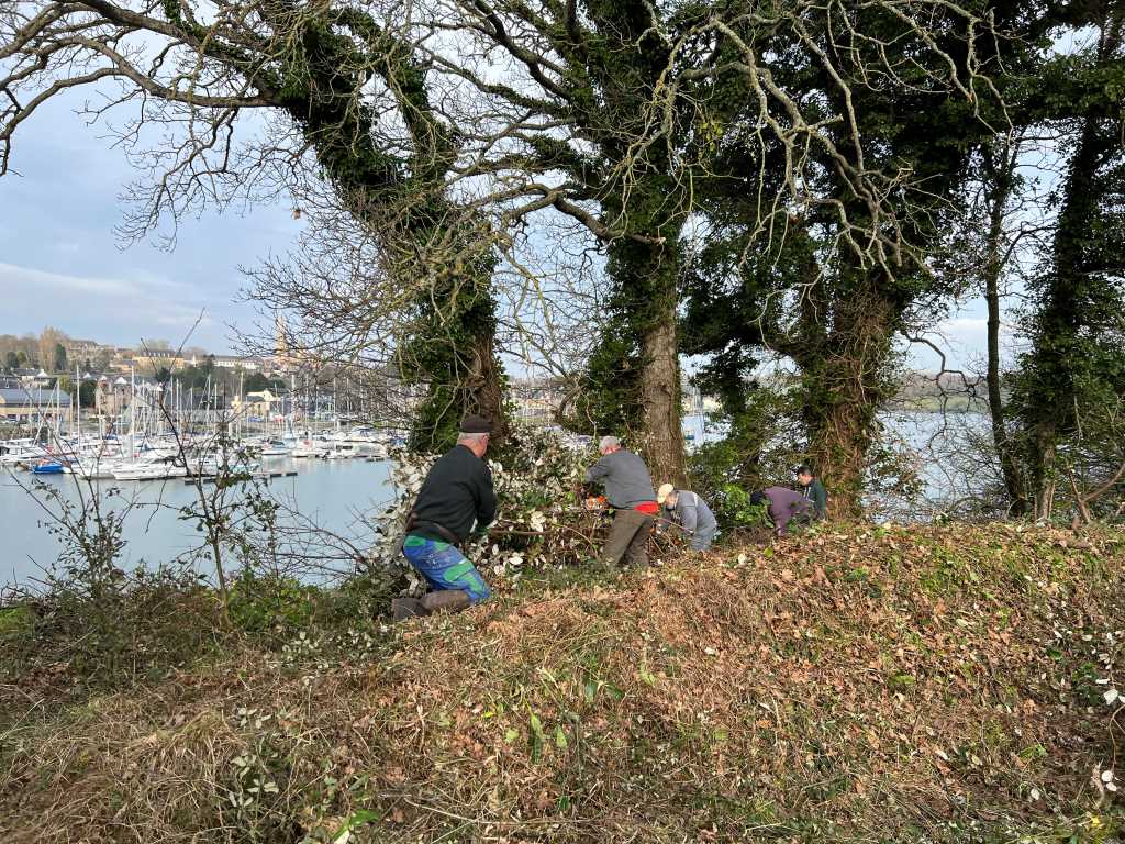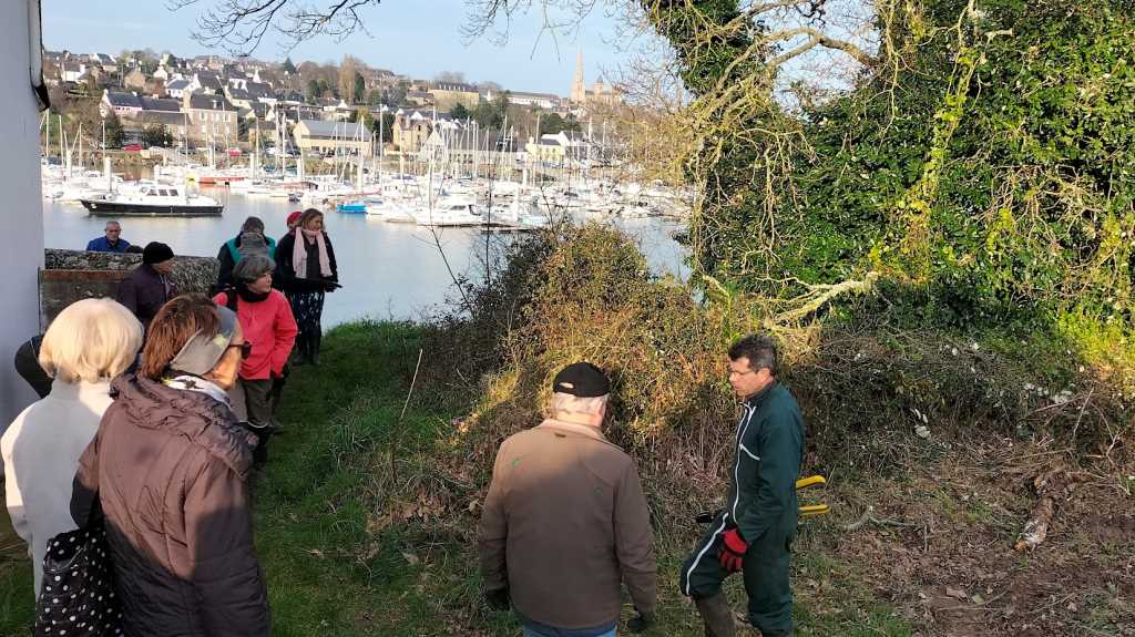 Mardi O8 février 2022, les baladeurs de Trédarzec, les compagnons de « Chemins vivants » de Plouguiel, et les bénévoles de « Skol Ar C’hleuziou » de Pouldouran ont œuvré de concert pour dégager un chemin entre le vieux pont Canada et le jardin de Kerdalo, chemin offrant une belle vue sur Tréguier et son port. Ce tronçon de 250 à 300 m de long  fait partie de l’ancien sentier des douaniers qui permettait  de relier, notamment, le Pont Canada à Pors Bihan. Pour le moment, un randonneur qui veut aller du Pont Canada à Pors Bihan doit monter la Vieille Côte, rejoindre Saint Levias par un bout de Voie Verte et continuer sur la route jusqu’à Pors Bihan en contournant les Jardins de Kerdalo. Ce trajet fait près de 2 kms avec 1,5 kms de bitume, alors que le passage par l’ancien sentier des douaniers ne représente que 700 m, avec juste 100 m de bitume au départ. On voit donc l’intérêt de s’intéresser à ce parcours.  Comme il n’y pas de servitude du littoral (nous sommes sur le domaine fluvial et pas sur le domaine maritime), il a été  nécessaire,  pour autoriser le passage des promeneurs,  d’établir une convention  avec le  propriétaire.  C’est ce qui a été fait très récemment entre la mairie de Trédarzec et M. François TREMEL.  Dans un second temps, nous allons nous intéresser au tronçon suivant   :  il est prévu que la mairie rencontre le propriétaire des jardins de Kerdalo, dans le but d’établir également une convention de passage.