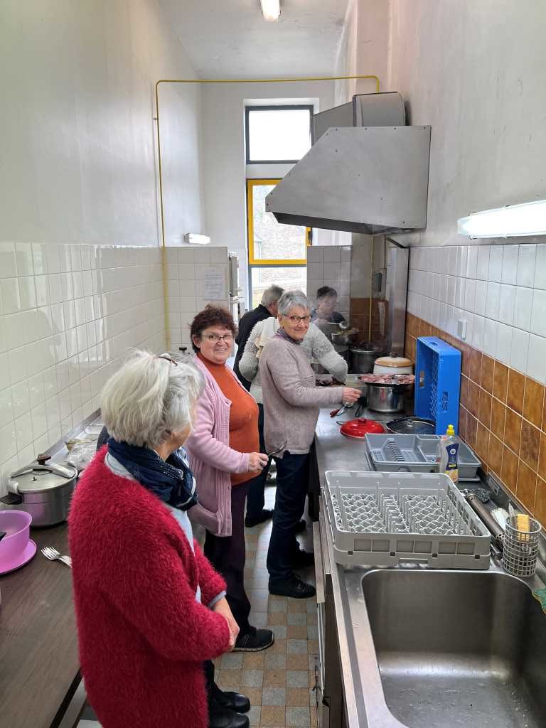 Après3 heures de travail bien orchestré, les volontaires ont été reçus par M. Le Maire de Trédarzec pour un apéritif bienvenu. Puis, comme pour chaque chantier festif, les bénévoles se sont retrouvés à la salle des fêtes de Hengoat où les attendait une potée bien garnie et fort goûteuse préparée par des « baladeuses » dont tous reconnaissent le talent culinaire.